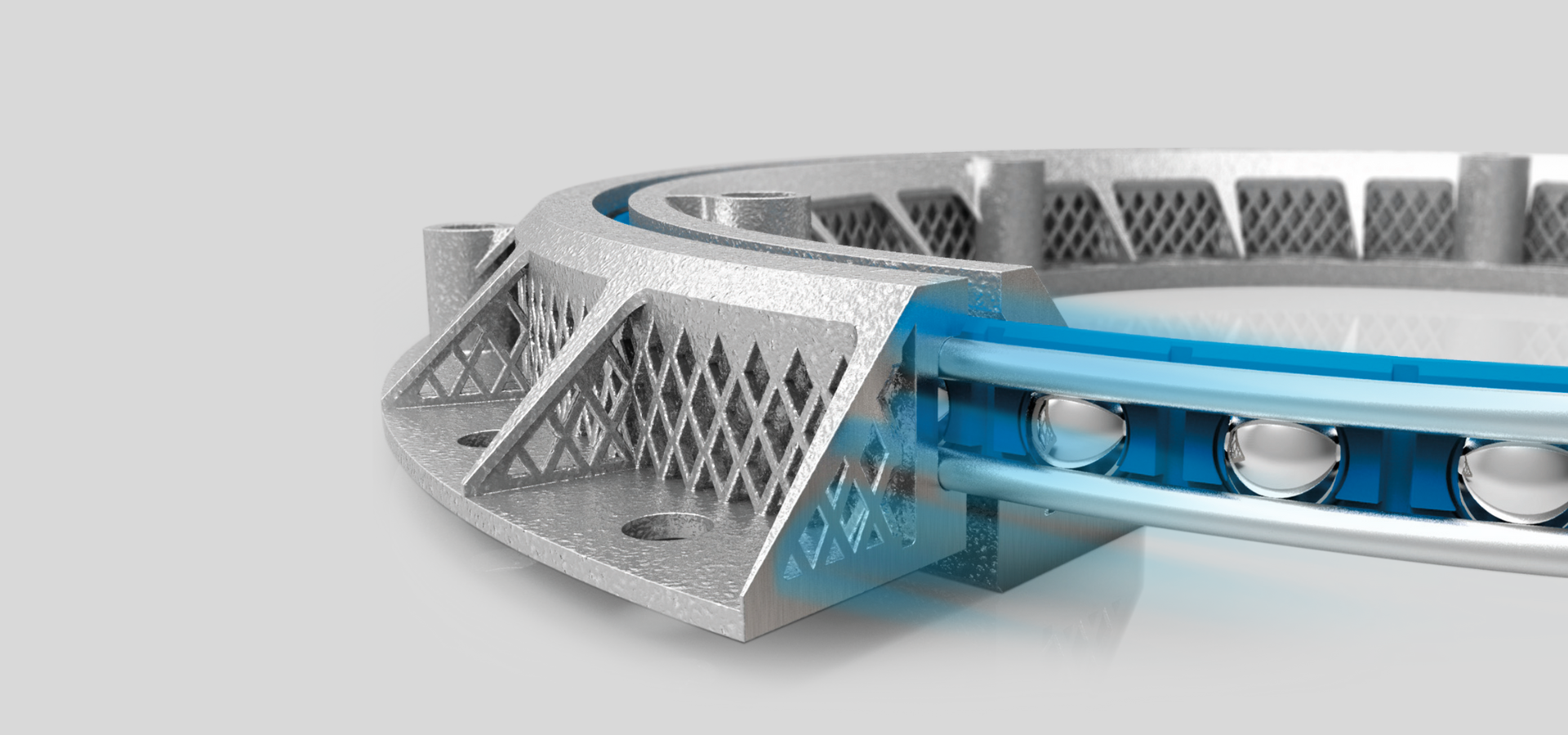 Découvrez comment l'optimisation topologique permet de réduire le poids d'une couronne d'orientation imprimée en 3D. Par rapport à une couronne optimisée à son maximum mais fabriquée de manière conventionnelle, il est possible de réaliser une économie supplémentaire de 16 % !